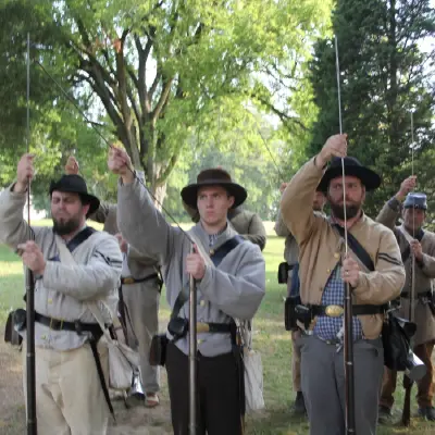 North Carolina Confederate reenactors drill at Chickamauga Battlefield