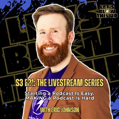 The barriers to entry preventing you from starting a podcast are pretty minimal. All the equipment you need to get your production in motion can be purchased from Amazon and land on your doorstep within a day or two.And if you want to go more low-tech, you technically could create voice notes on your smartphone and upload them as podcast episodes (chef does not recommend).But know this: STARTING a podcast is just the first step. MAKING a podcast, on the other hand, takes a major commitment too many aspiring podcasters don't bring to the table. Unfortunately, they're fooled into believing podcast results are instantaneous and achieving top billing with their show happens with little to no effort.Don't get consumed by someone else's highlight reel and focus on making YOUR show the very best it can be.In Season 3 of Let's Blow This Up, the subject of "podcaster's mindset" has come up in many of our conversations. And this installment from the Livestream Series is no different. Join me and my guest Eric Johnson, Founder of LightningPod, as we provide guidance and expertise on getting beyond just starting a podcast and, instead, prepare for the ongoing, rewarding journey that comes from making your podcast something your core audience gobbles up each and every time you release a new episode.Together, Eric and I tackle:- What it takes to stay committed to your podcast- Why so many podcasts don't get beyond their first few episodes- The biggest reason(s) you can't get consumed by highlight reels- Easy-to-implement tips to ensure you stay loyal to your show- How to keep things fresh and exciting with your podcast- And much more